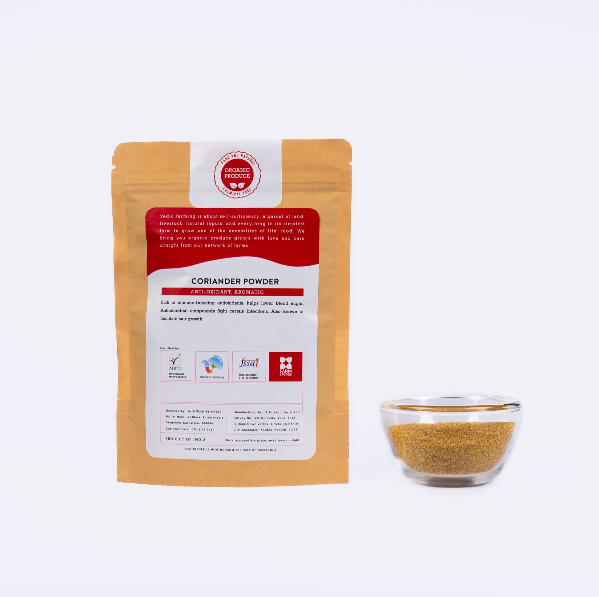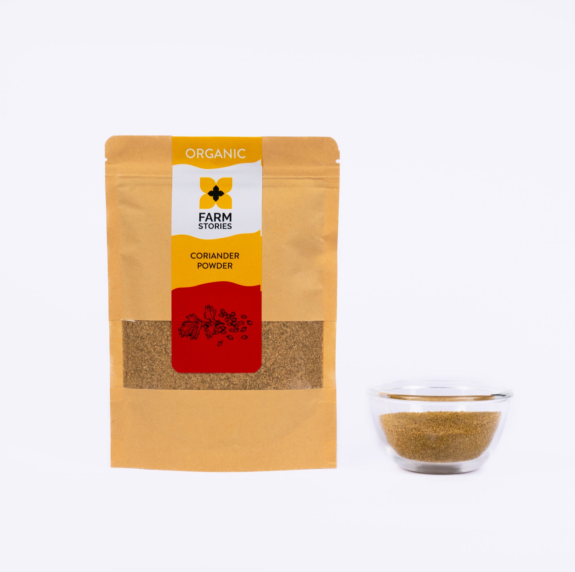 Farm Stories Organic Coriander is grown locally using vedic farming methods and has a warm subtle citrus aroma. The whole and split seeds of coriander are dry roasted and ground into a fine powder making your masalas easier to make.